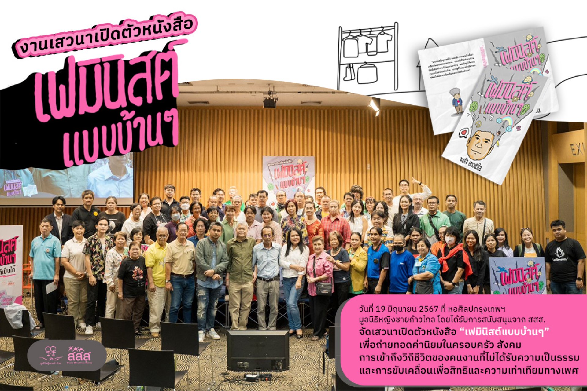 วันที่ 19 มิถุนายน 2567 ที่หอศิลปวัฒนธรรมแห่งกรุงเทพมหานคร มูลนิธิหญิงชายก้าวไกล โดยได้รับการสนับสนุนจากสำนักงานกองทุนสนับสนุนการสร้างเสริมสุขภาพ (สสส.) จัดเสวนาเปิดตัวหนังสือ "เฟมินิสต์แบบบ้านๆ" เพื่อถ่ายทอดค่านิยมในครอบครัว สังคม การเข้าถึงวิถีชีวิตของคนงานที่ไม่ได้รับความเป็นธรรม และการขับเคลื่อนเพื่อสิทธิและความเท่าเทียมทางเพศ