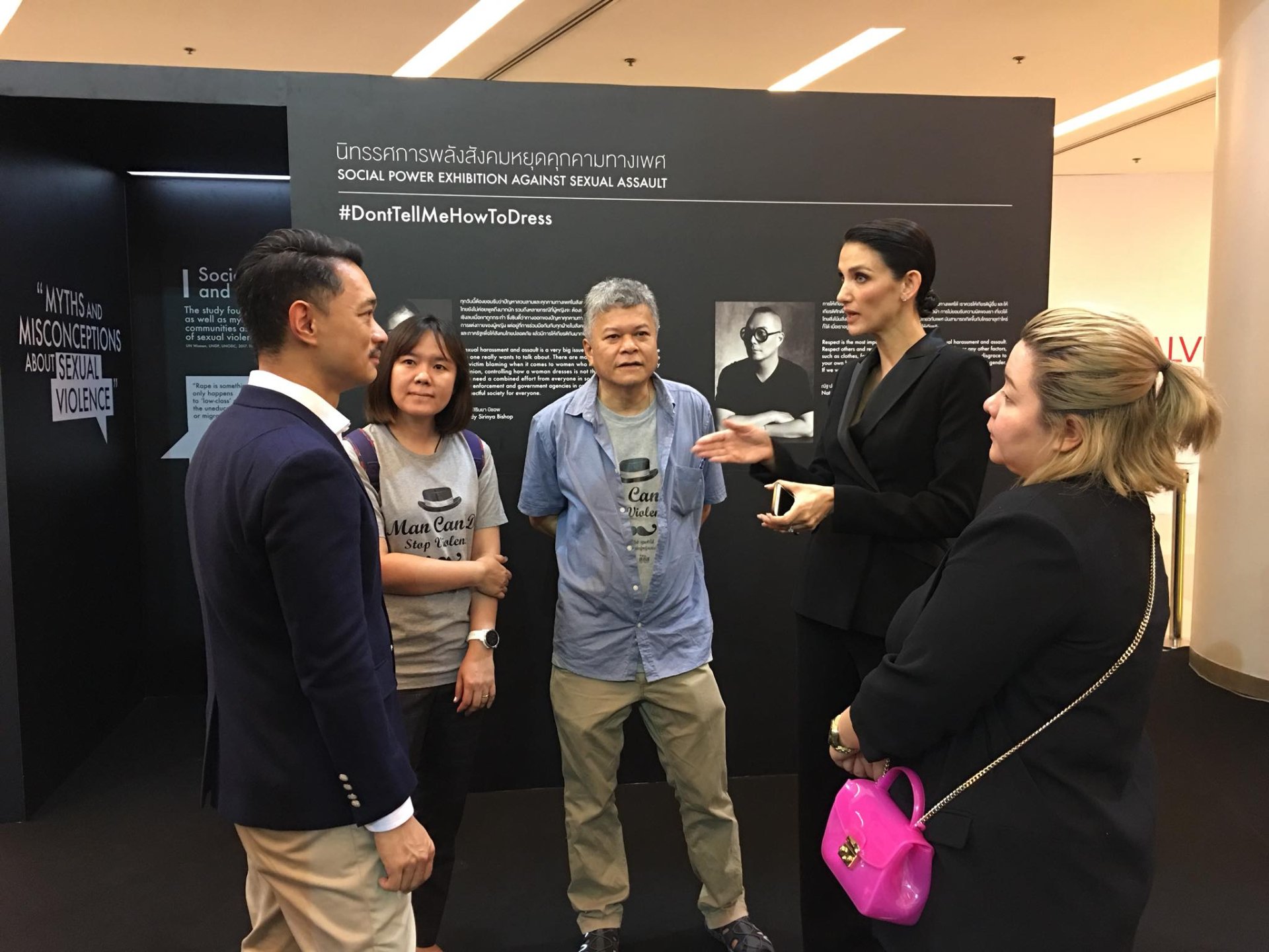โดยคุณซินดี้ได้ช่วยติดต่อประสานงานสถานที่จัดแสดงที่ศูนย์การค้าสยามพารากอน เชิญชวนเพื่อนดารานักแสดงและผู้มีชื่อเสียงในวงการบันเทิงมาเป็น Speaker สื่อสารประเด็นเกี่ยวกับการถูกล่วงละเมิด และถูกคุกคามทางเพศผ่านคลิปวิดิโอและภาพถ่าย โดยฝีมือช่างภาพแฟชั่นผู้มีชื่อเสียงระดับประเทศและนำมาจัดแสดงเป็นส่วนหนึ่งของนิทรรศการ ควบคู่กับการจัดแสดงชุดที่ใส่ในวันถูกคุกคามทางเพศ