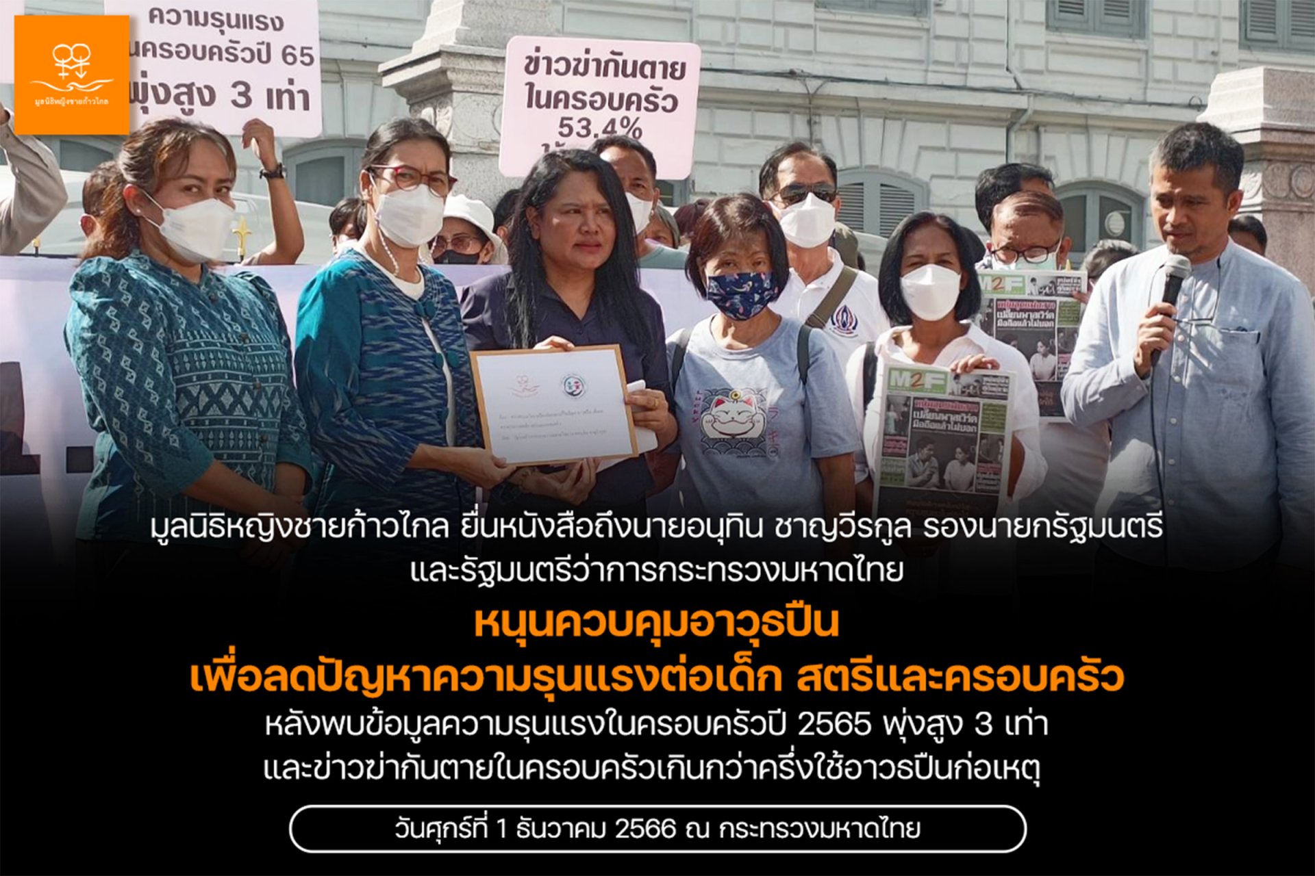 มูลนิธิหญิงชายก้าวไกล ยื่นหนังสือถึงรัฐมนตรีว่าการกระทรวงมหาดไทย เพื่อสนับสนุนนโยบายควบคุมอาวุธปืน