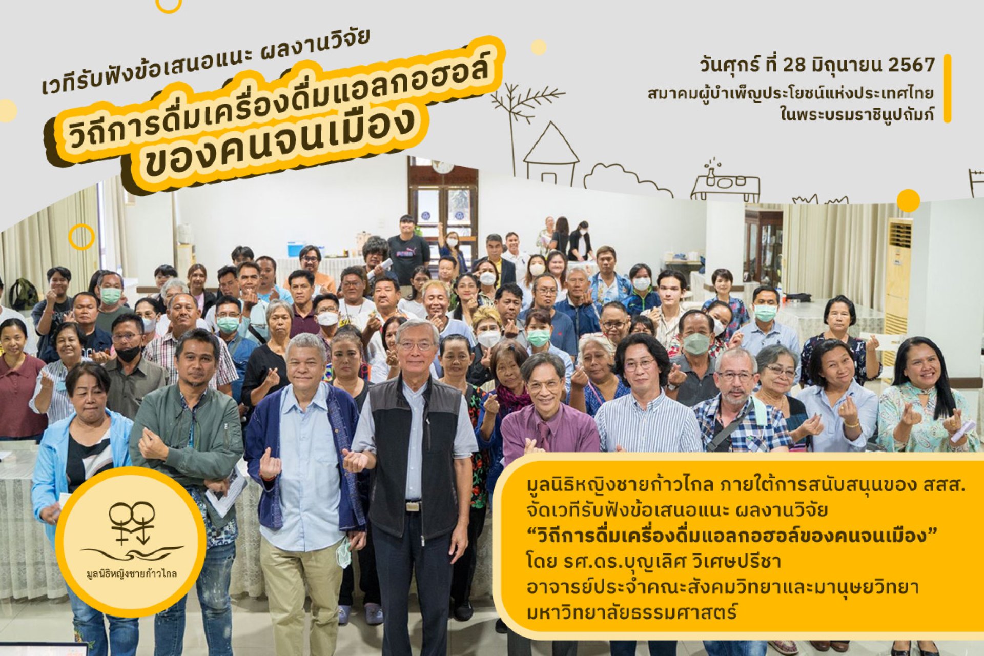 มูลนิธิหญิงชายก้าวไกล ภายใต้การสนับสนุนของ สสส. จัดเวทีรับฟังข้อเสนอแนะ ผลงานวิจัย "วิถีการดื่มเครื่องดื่มแอลกอฮอล์ของคนจนเมือง"