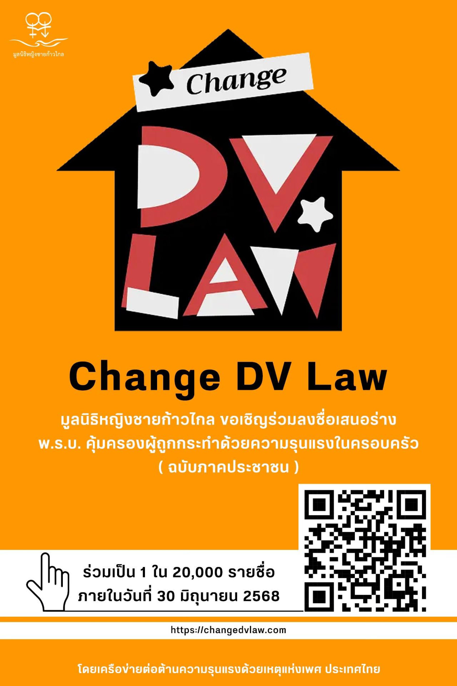 ลงชื่อเสนอกฎหมายได้ที่เว็บไซต์ https://changedvlaw.com ภายในวันที่ 30 มิถุนายน 2568 เราต้องการทั้งสิ้น 20,000 รายชื่อ!