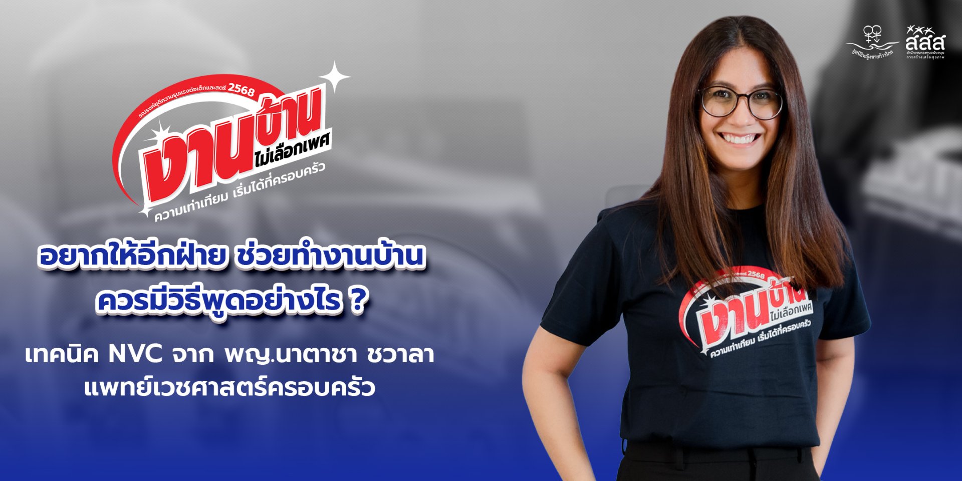พญ.นาตาชา ชวาลา แพทย์เวชศาสตร์ครอบครัว อธิบายว่า การเปิดบทสนทนาเรื่องงานบ้านอย่างเข้าใจและเคารพกันจึงเป็นสิ่งสำคัญ เพราะ การแบ่งงานบ้านไม่ใช่การ ช่วย แต่คือการ แบ่งภาระร่วมกัน ของทั้งคู่