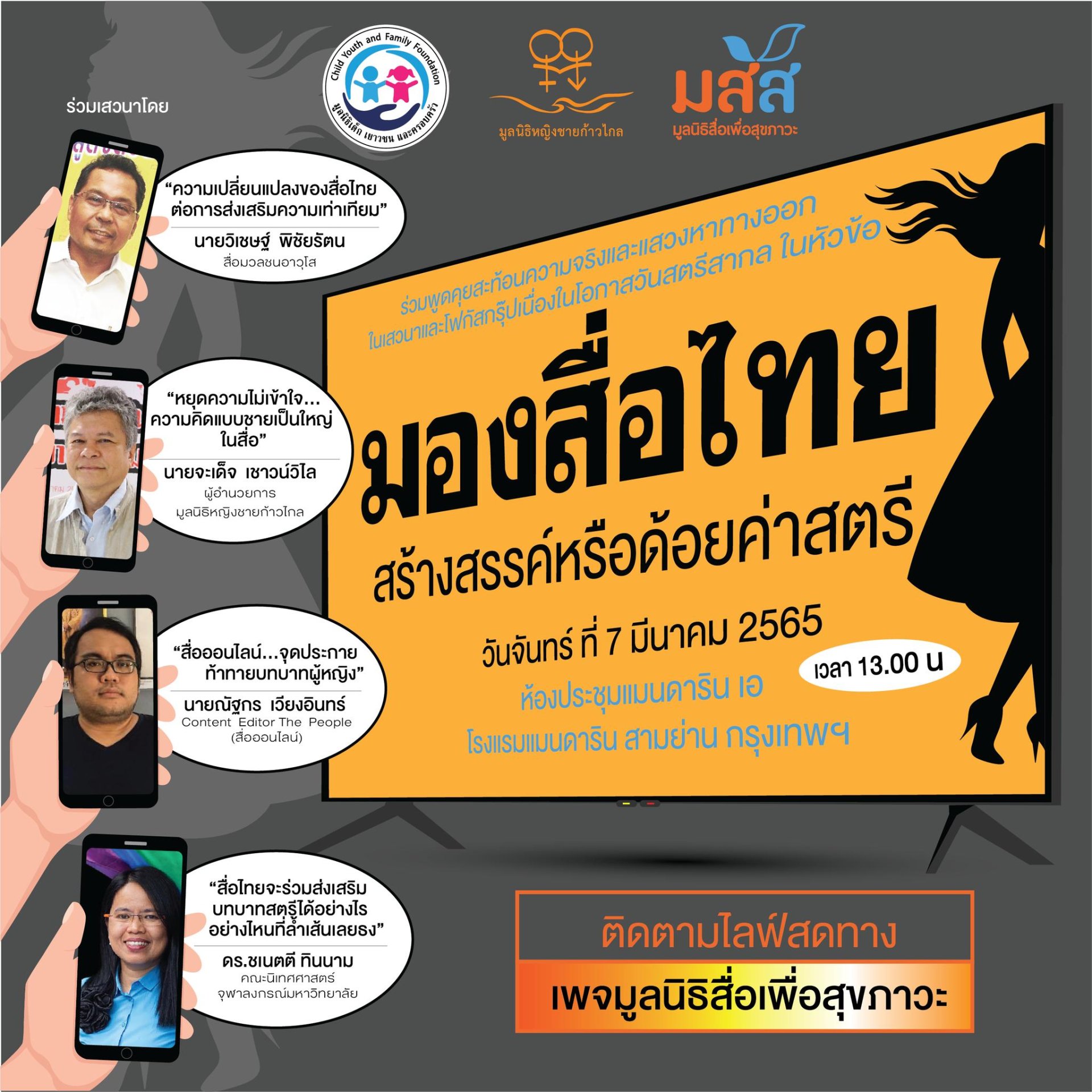 ถ่ายทอดสดเสวนา “มองสื่อไทย สร้างสรรค์หรือด้อยค่าสตรี”