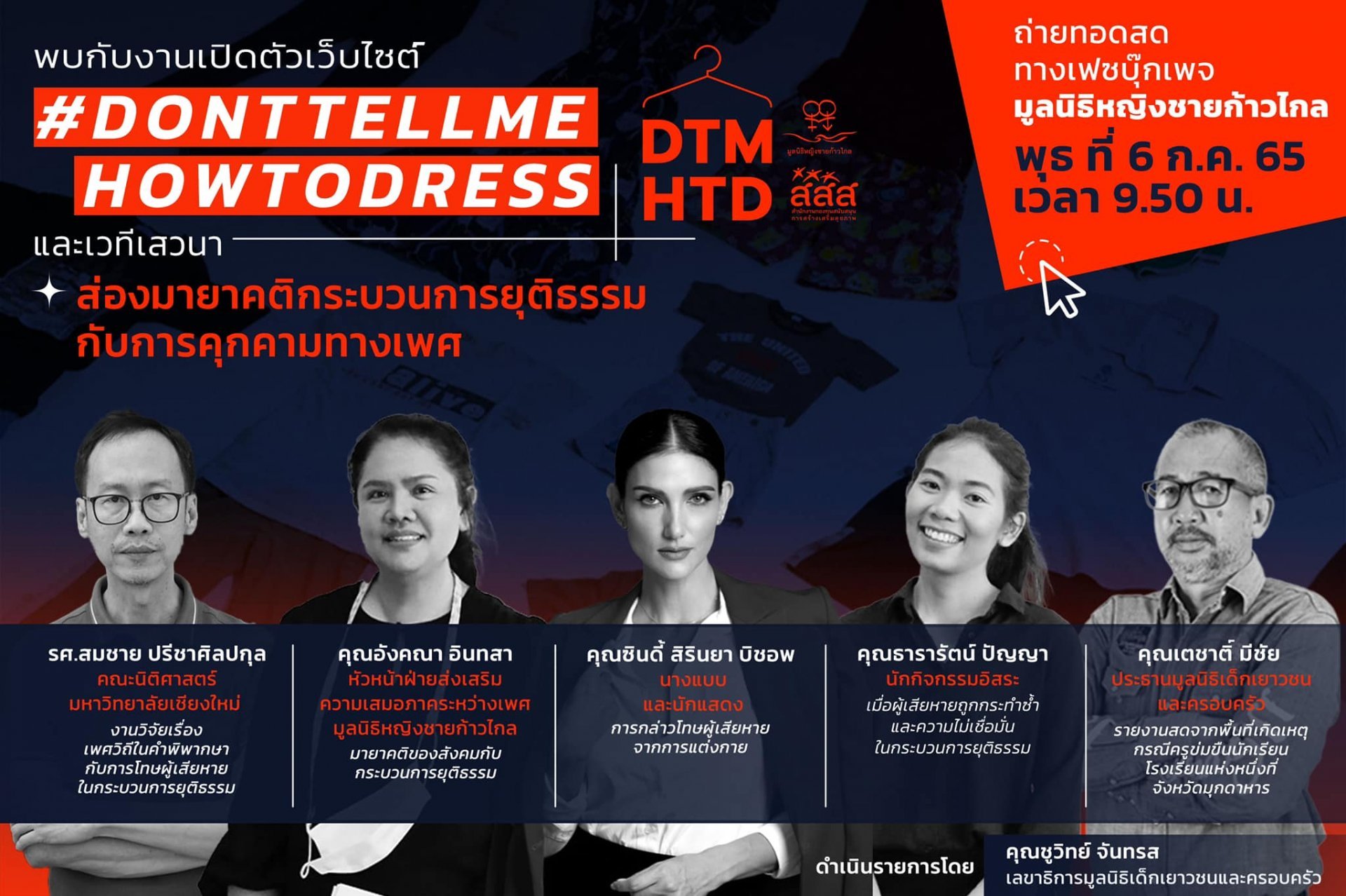 ถ่ายทอดสดทางเฟซบุ๊กเพจ มูลนิธิหญิงชายก้าวไกล วันพุธที่ 5 กรกฎาคม 2565 เวลา 9.50 น.