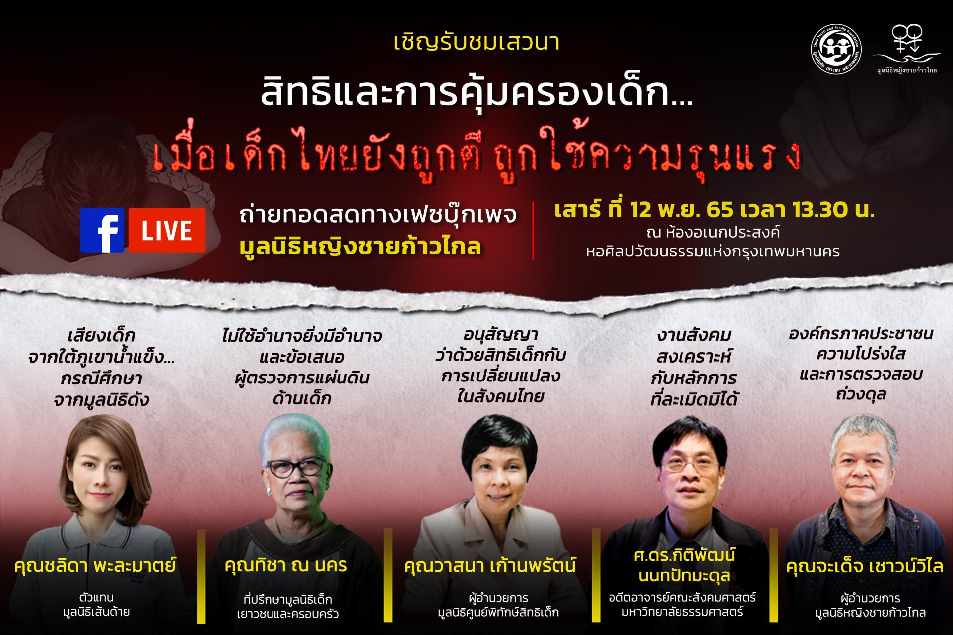 เชิญทุกท่านรับชมเสวนา “สิทธิและการคุ้มครองเด็ก...เมื่อเด็กไทยยังถูกตี ถูกใช้ความรุนแรง”