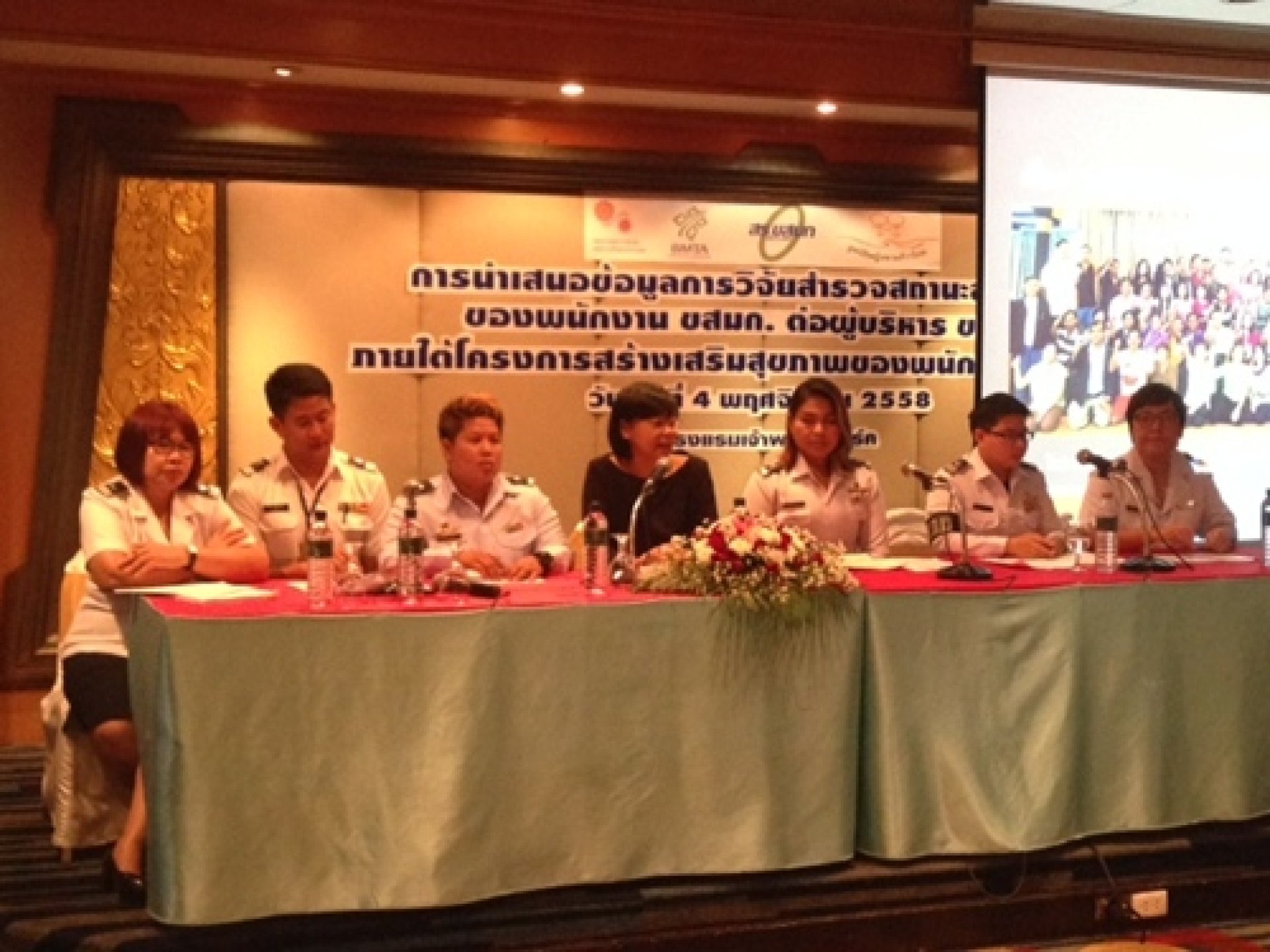 โครงการสร้างเสริมสุขภาพของพนักงานองค์การขนส่งมวลชนกรุงเทพ (ขสมก.) อยู่ภายใต้แผนงานลดผลกระทบจากเครื่องดื่มแอลกอฮอล์ ซึ่งเป็นแผนงาน 3 ปี (พ.ศ. 2557-2560) เป็นการทำงานร่วมกันระหว่างภาคี 4 องค์กร ได้แก่ (1) สหภาพแรงงานรัฐวิสาหกิจองค์การขนส่งมวลชนกรุงเทพ (2) องค์การขนส่งมวลชนกรุงเทพหรือ ขสมก. (3) แผนงานส่งเสริมสุขภาวะผู้หญิงและความเป็นธรรมทางเพศ สมาคมเพศวิถีศึกษา และ (4) แผนงานลดผลกระทบจากเครื่องดื่มแอลกอฮอล์ มูลนิธิหญิงชายก้าวไกล โดยมีเป้าหมายเพื่อสนับสนุนการเปลี่ยนแปลงเชิงระบบและเพื่อให้พนักงาน ขสมก. มีสุขภาวะที่ดีขึ้น ให้การบริการที่มีประสิทธิภาพมากขึ้น รวมถึงผลักดันให้ ขสมก. เป็นองค์กรตัวอย่างในการสร้างเสริมสุขภาพของพนักงานในองค์กร